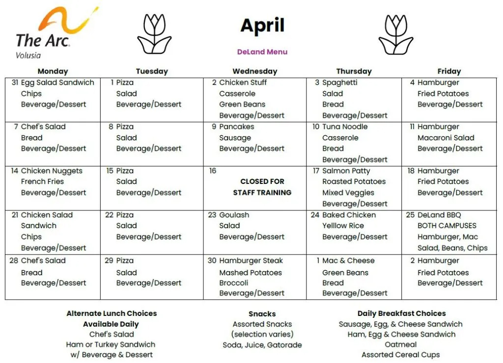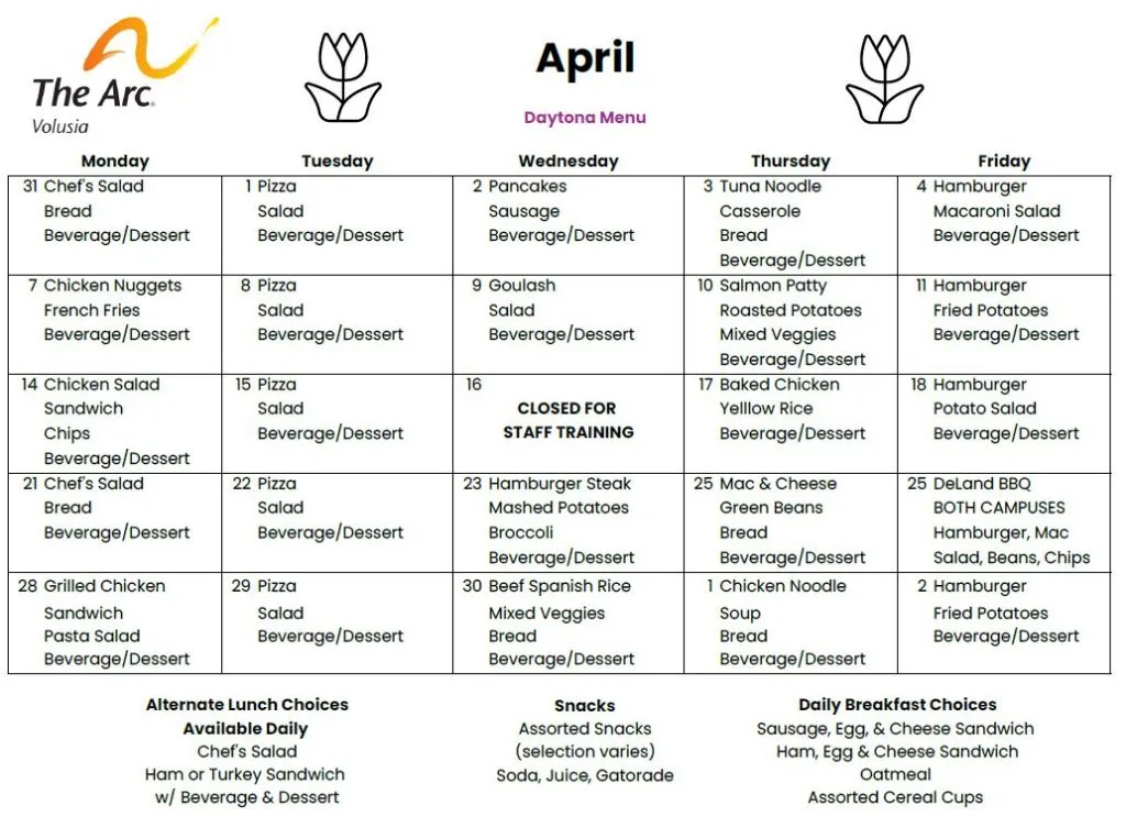 Click on the images below to view the lunch menus for our Daytona Beach and DeLand locations.